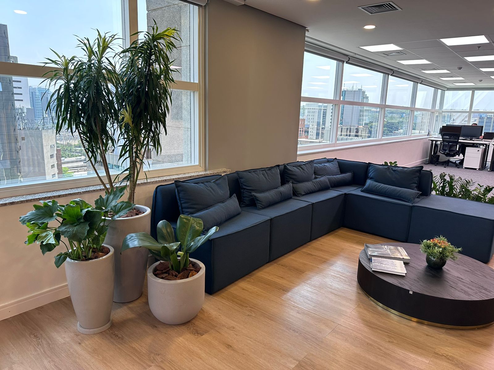 Neste projeto , a excelência foi nossa prioridade ao fornecer a solução completa de mobiliário. Nossa curadoria abrange desde as bancadas e banquetas para a área colaborativa até as poltronas sofisticadas da recepção.