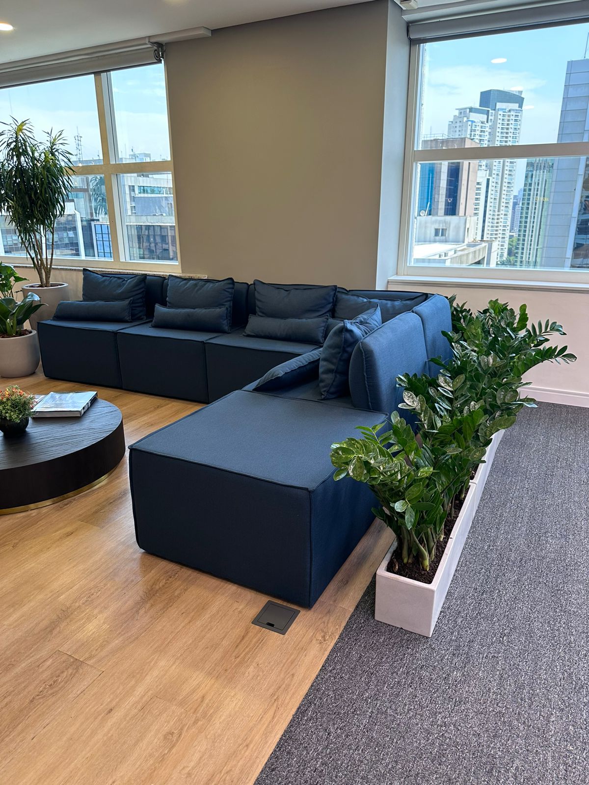 Um destaque especial é o sofá exclusivo, meticulosamente desenvolvido e fabricado sob medida para atender às especificações únicas do cliente.