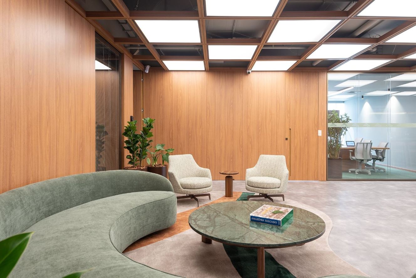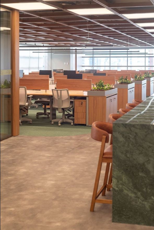 Áreas Colaborativas: O espaço é enriquecido com nosso diversificado mobiliário colaborativo e estofados customizados.