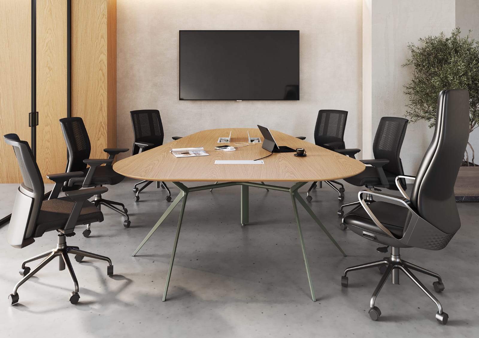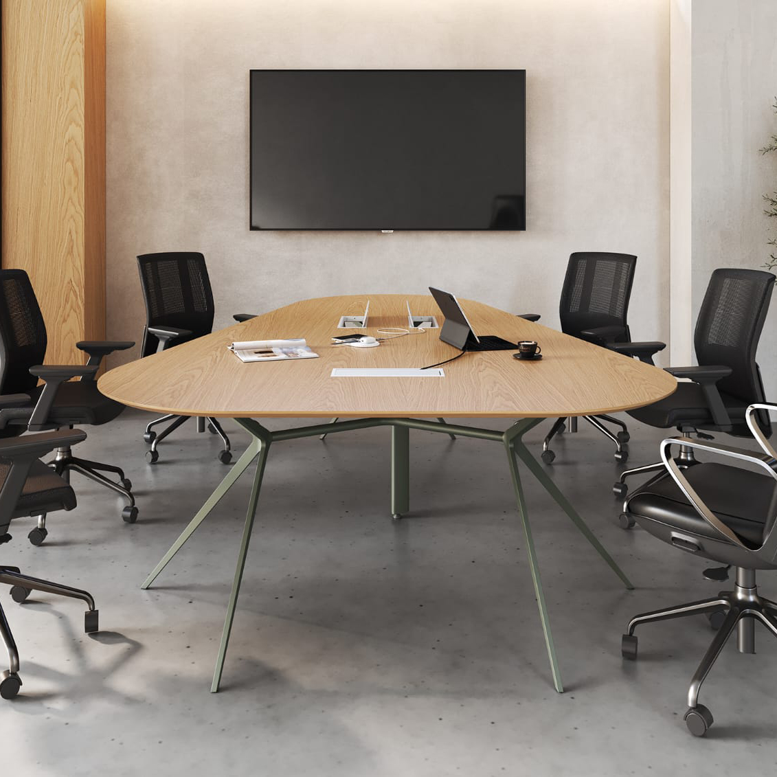 Redefina o ambiente de decisões com uma peça que une ergonomia e design contemporâneo. Com tampo em formato orgânico e bordas delicadamente chanfradas, esta mesa elimina a rigidez dos escritórios tradicionais, promovendo uma comunicação mais dinâmica.