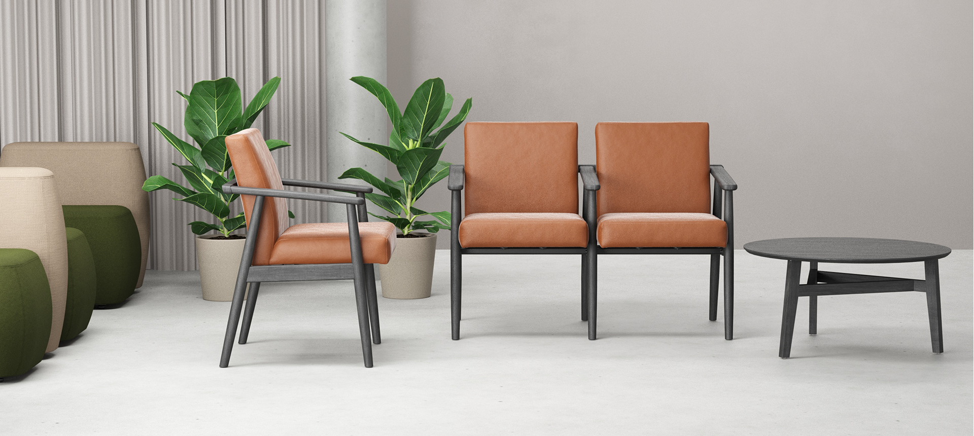 Rimeva equilibra o natural e o sofisticado, unindo a autenticidade da madeira a um design atemporal e elegante. Disponível também como longarina e acompanhada de mesa de centro, Rimeva é a solução que transforma qualquer ambiente com sua simplicidade refinada e presença marcante.